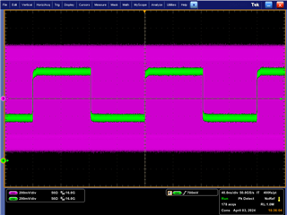 But with our setup of f(SysRefReg) = f(OSCin) / 8 this would result in a much greater difference than just two RefOutA clocks, since the multiplication between OSCin and RefOutA is x80.